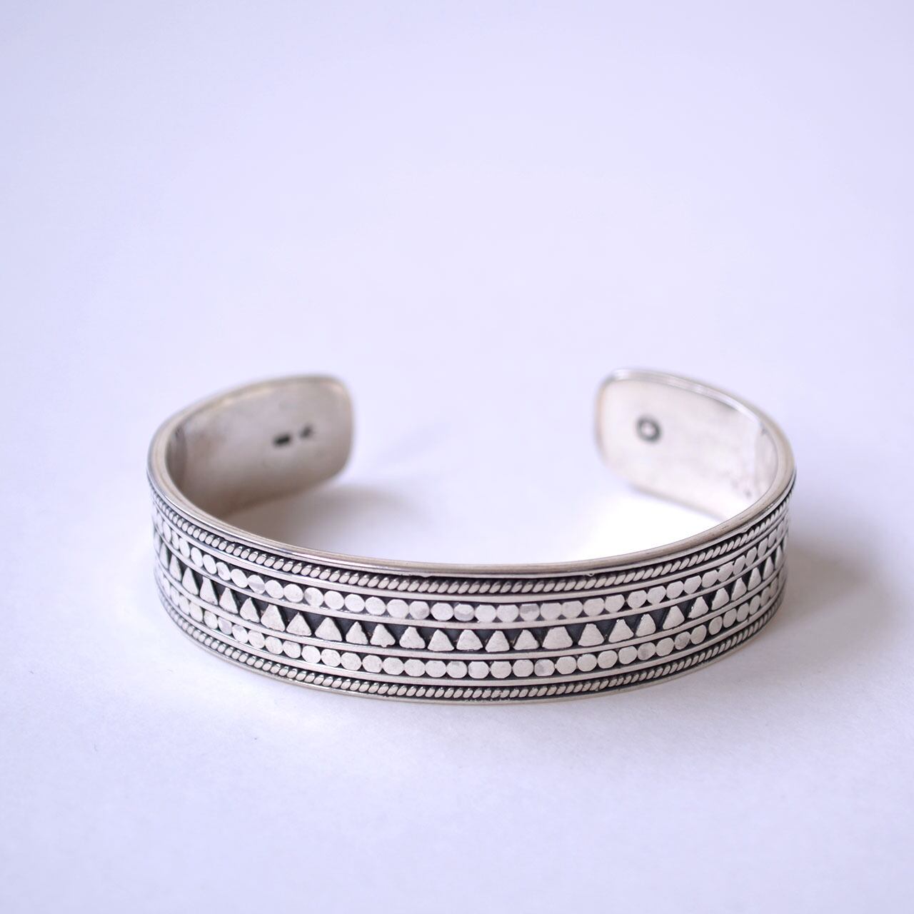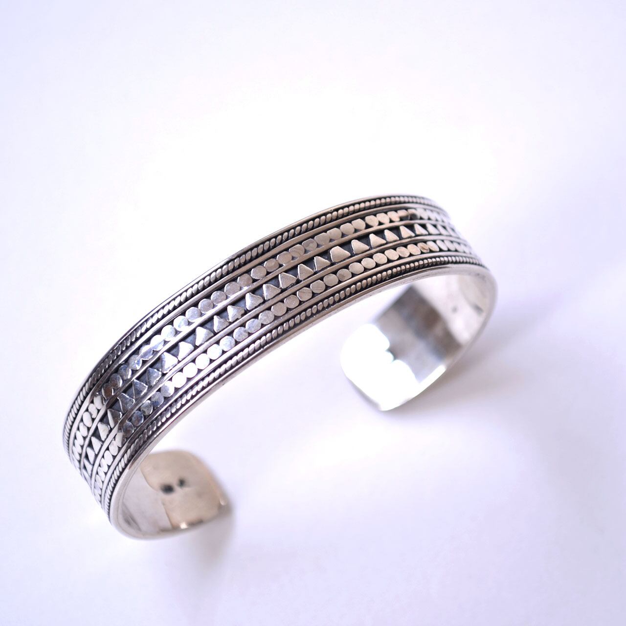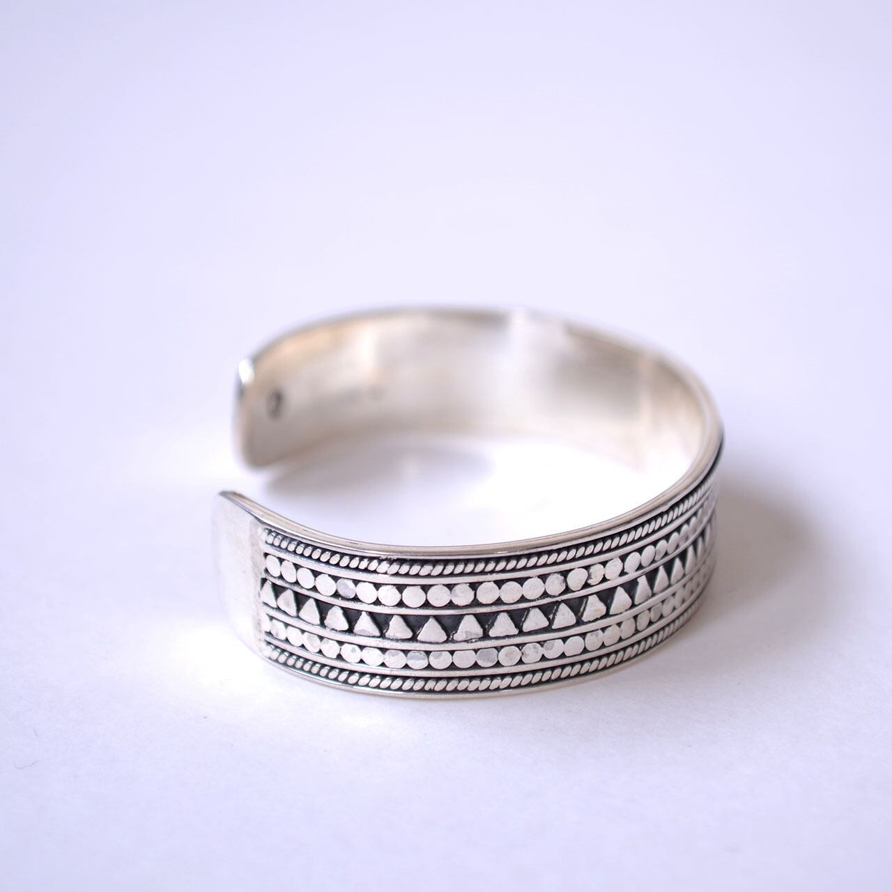 独特な柄が施されたArmadilo Tri Bangle。マナナスらしい異文化の伝統的/民族的な要素を結びつけ、絶妙なバランスでハンドクラフトされたアイテム。個性的でありながら、ハード過ぎず上品さも感じられコーディネートに溶け込みやすいブレスレットです。
