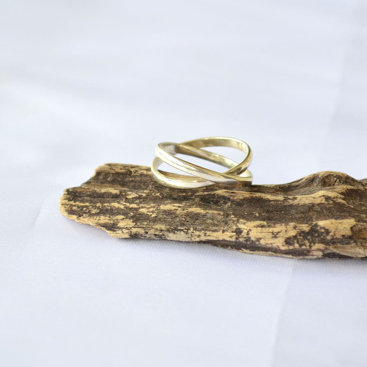 2つのリングが重なり合うデザインが特徴のDouble Cross Ring。シンプルで上品なマナナスらしい軽やかな仕上がり。滑らかな着け心地と合わせやすさで毎日身に着けられるリングです。