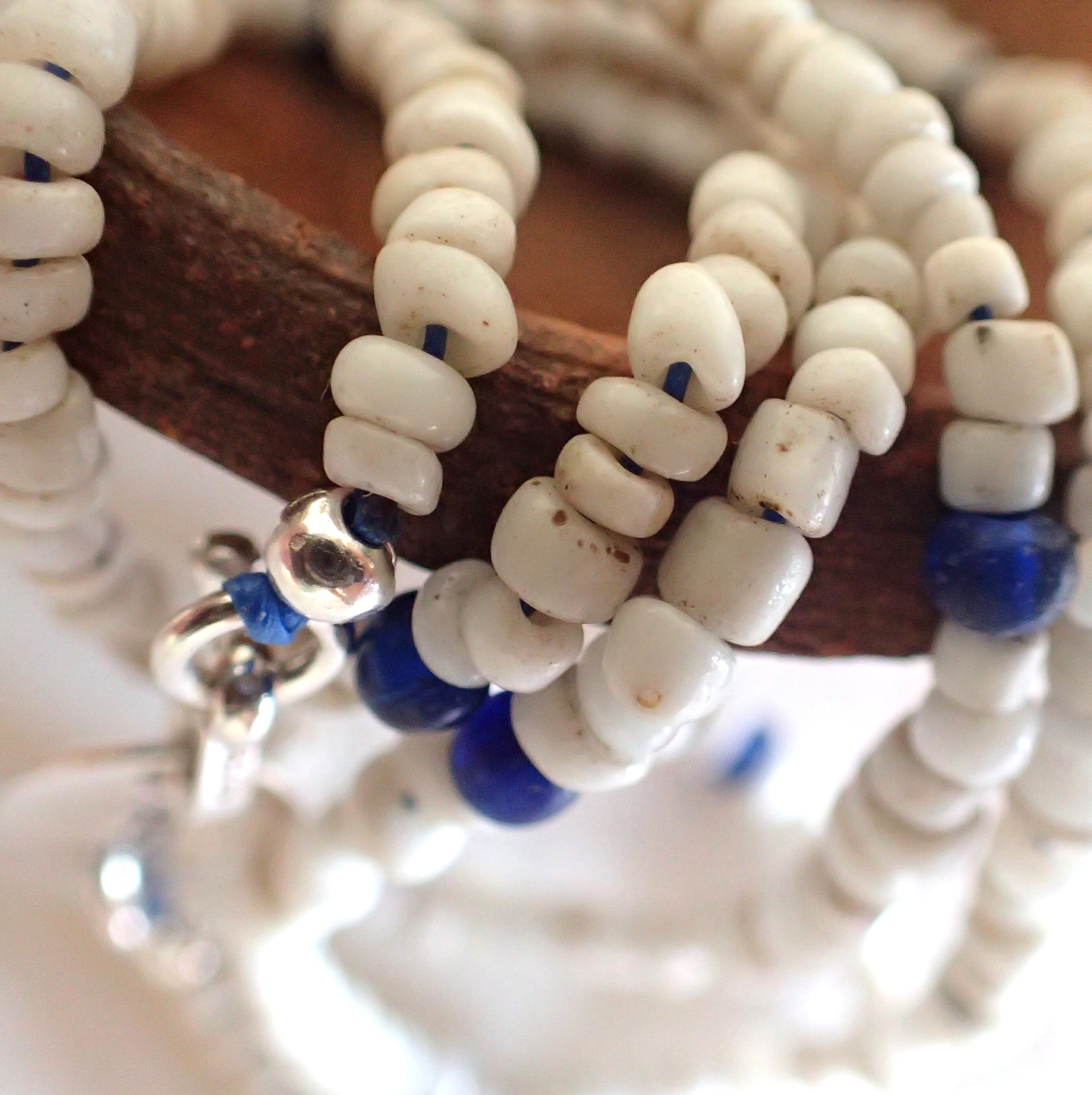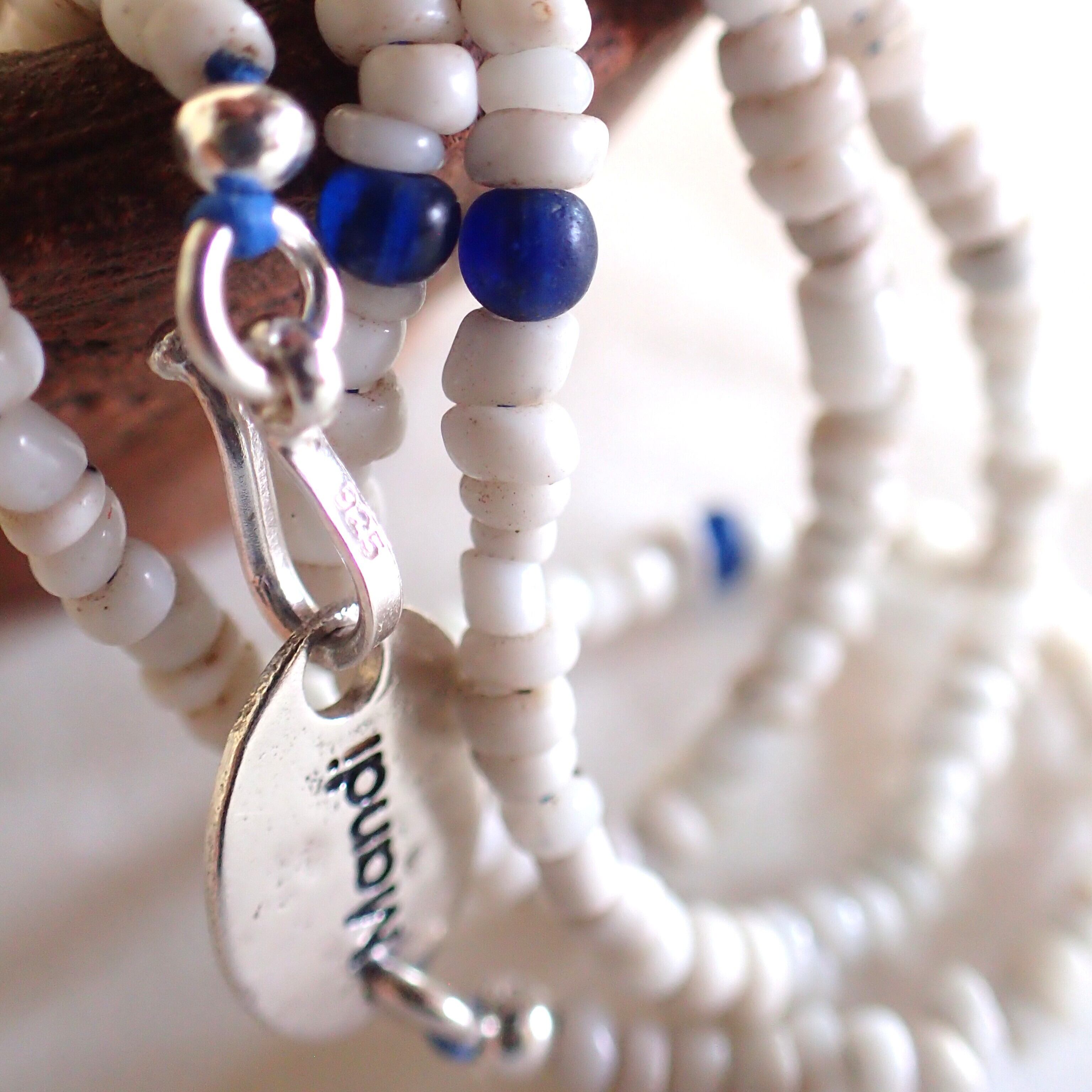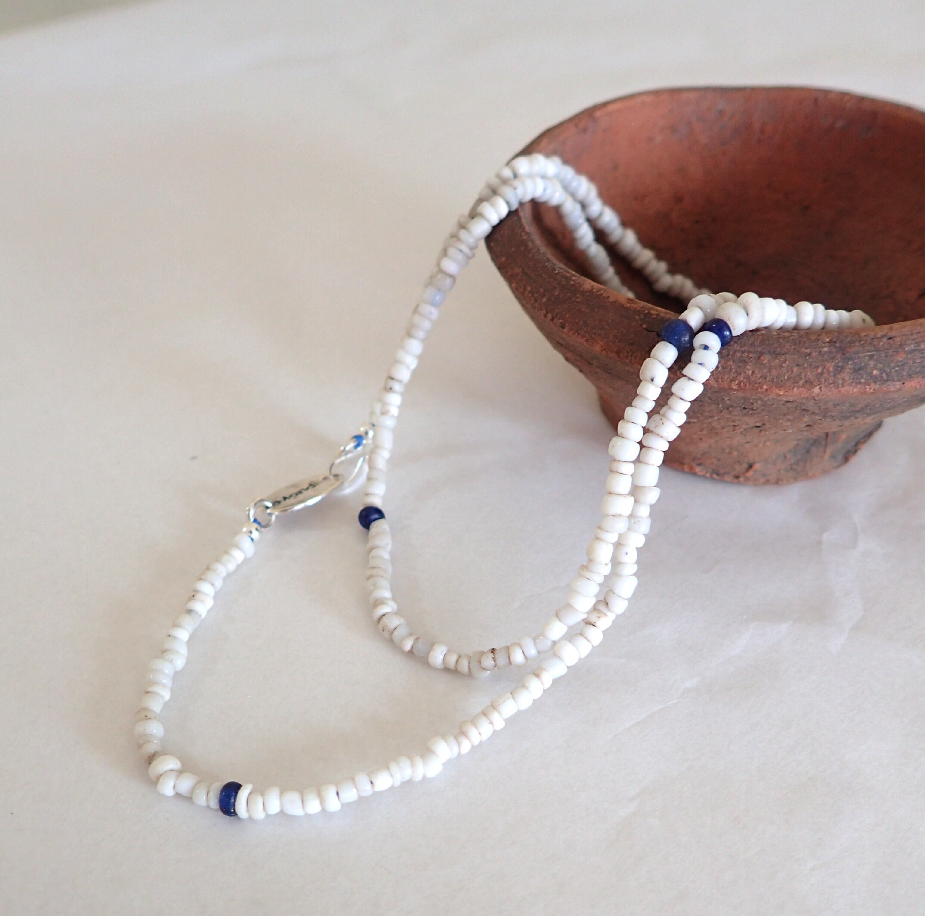 Mandi/マンディ Antique Beads Necklace(60cm)(White×Navy)