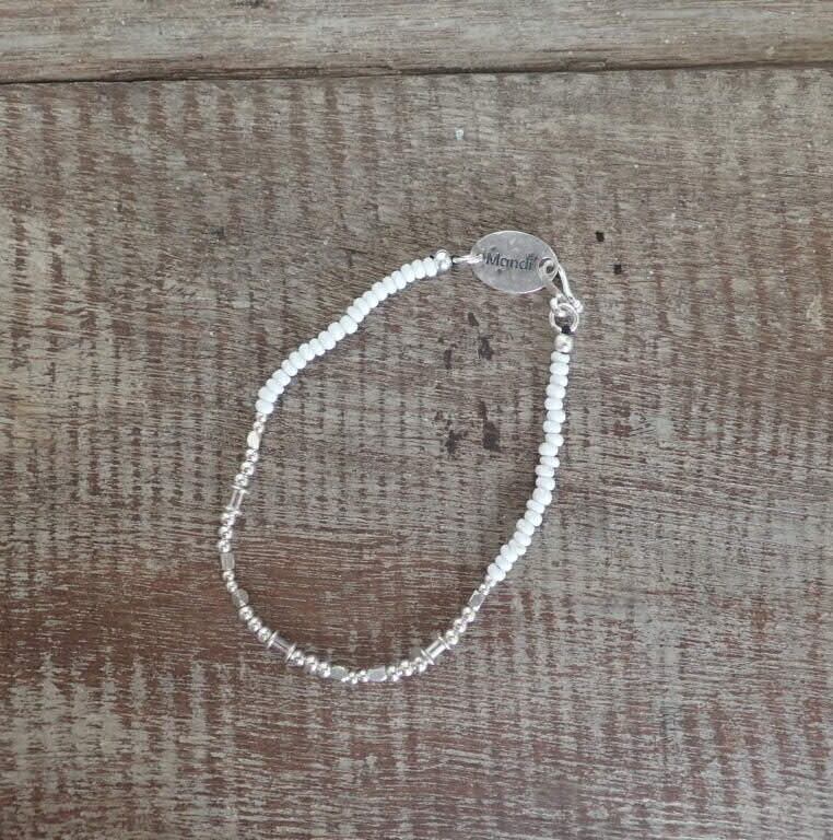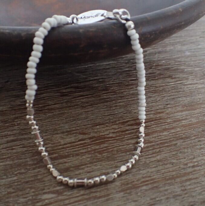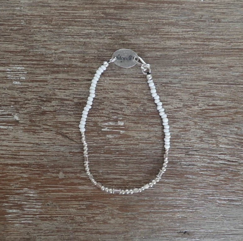 Mandi/マンディ Small A.Beads × Silver Bracelet(White×Silver)
